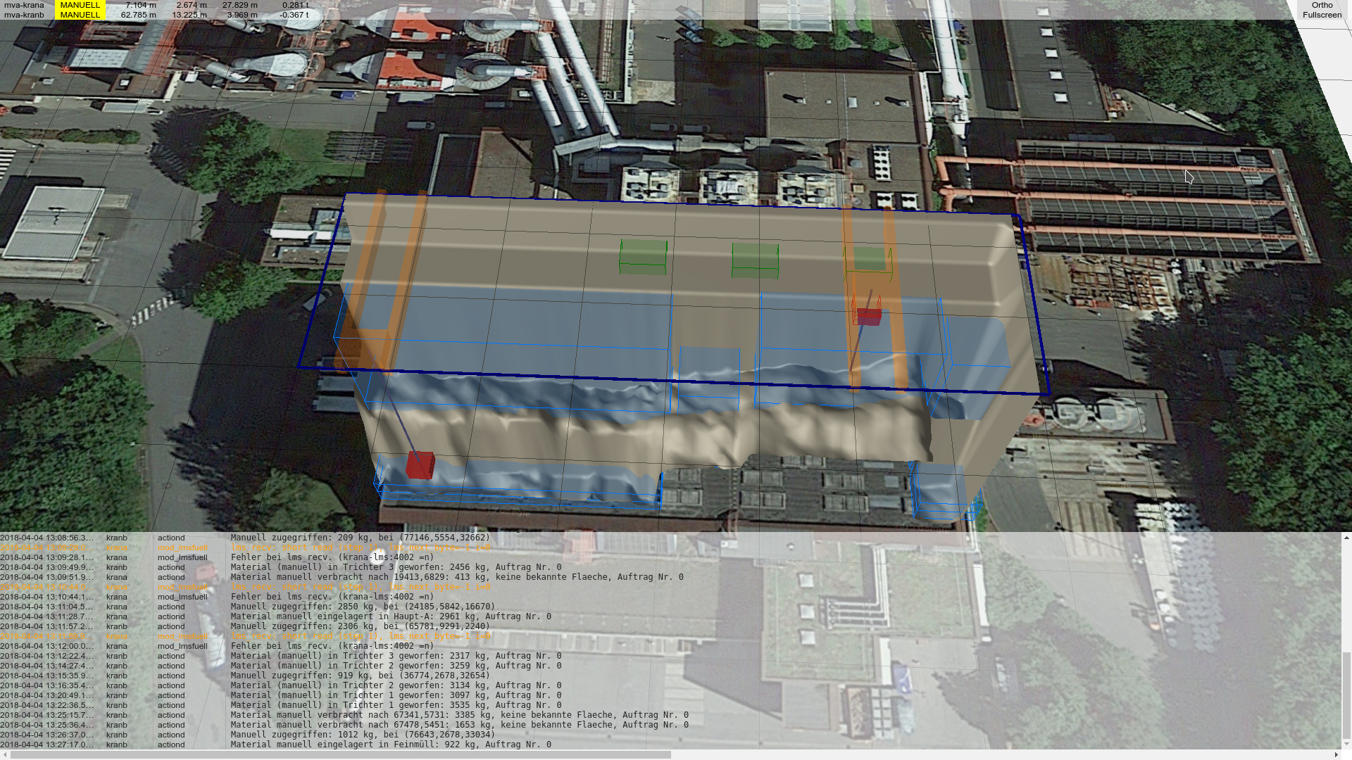 Kombiniert mit den Kommunikationsfeldern ist eine virtuelle Übersicht über den Kranbetrieb